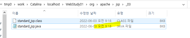 최초의 요청 발생했을때 jsp소스 파싱해서 만들어낸다는것 컴파일해서 클래스를 만든다는것