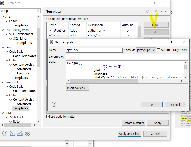자주쓰는것 템플릿 등록 (ajax부분 그런데 $$으로 해주기)