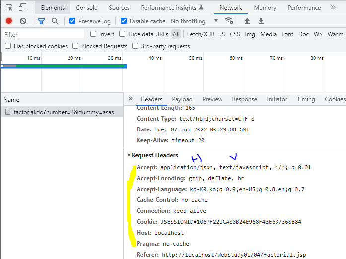 메소드가 get일때 Accept 헤더 : 반드시 답장을 json으로 해