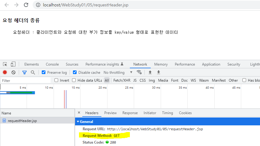 메소드를 생략한 모든 메소드는 GET방식 !!!! 바디는 없고 Line과 Header만 존재