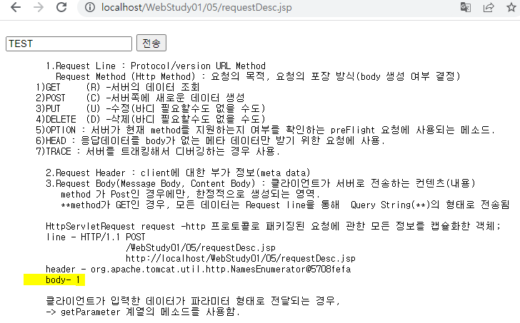 바디가 있을때는 무조건 request.setCharacterEncoding("UTF-8"); 처리해줘야함
