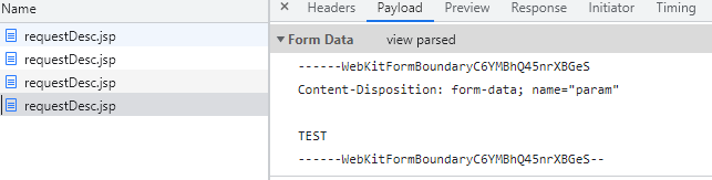 경계선 문자를 통해서 복원 멀티파트이므로 쪼개져 있는것임 당연히 서버에서 파라미터가 아니라 파트를 꺼내는 작업이필요함