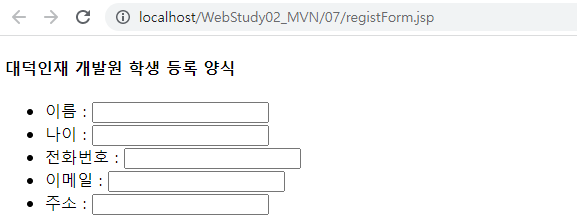 하나의 페이지가 여러 view layer에 의해 형성되는 모듈화 구조(페이지 모듈화).request.getRequestDispatcher("/07/registForm.jsp").include(request, response);