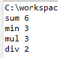 unction add(a,b){ return a+b; } function minus(a,b){ return a-b; } function multiply(a,b){ return a*b; } function divide(a,b){ return a/b; } var sum =add(1,5); var min =minus(4,1) var mul = multiply(1,3); var div =divide(4,2); console.log("sum",sum) console.log("min",min) console.log("mul",mul) console.log("div",div)