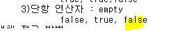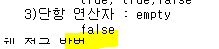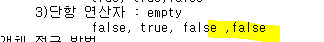 =>(문자열 길이)데이터 길이를 파악하고 있음 " " 빈칸일거같지만 길이를 파악해서 fasle찍어줌 만약 ""이거라면 true