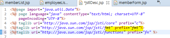 :커스텀 태그들 중 널리 쓰이는 것들을 모아놓은 라이브러리.taglib 로 사용할 커스텀 태그의 라이브러리 파일을 로딩.