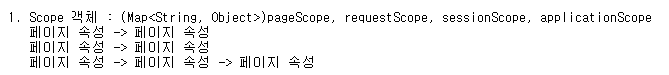 EL : 4개의 스코프중에 들어가있는 속성을 사용하는것 ,jsp기본객체와 다름
