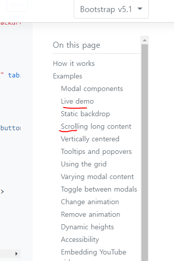 <div class="modal-dialog-scrollable"> => 내용 길면 스크롤 적용시킴