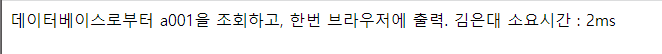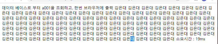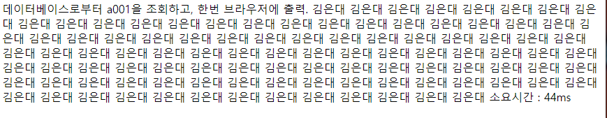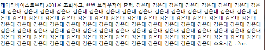 <%@page import="java.sql.ResultSet"%> <%@page import="java.sql.Statement"%> <%@page import="kr.or.ddit.db.ConnectionFactory"%> <%@page import="java.sql.Connection"%> <%@ page language="java" contentType="text/html; charset=UTF-8" pageEncoding="UTF-8"%> <!DOCTYPE html> <html> <head> <meta charset="UTF-8"> <title>Insert title here</title> </head> <body> 데이터베이스로부터 a001을 조회하고, 한번 브라우저에 출력. <% long start = System.currentTimeMillis(); String sql = "SELECT * FROM MEMBER WHERE MEM_ID = 'a001'"; try( Connection conn = ConnectionFactory.getConnection(); Statement stmt = conn.createStatement(); ){ ResultSet rs = stmt.executeQuery(sql); if(rs.next()){ for(int i=1; i<=100; i++){ out.println(rs.getString("MEM_NAME")); } } } long end = System.currentTimeMillis(); %> 소요시간 : <%=end-start %>ms </body> </html>
