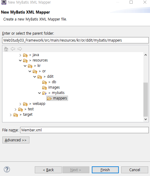 이제 우리는 매핑된 SQL 구문을 정의할 시간이다. 하지만 먼저 설정을 어디에 둘지 결정해야 한다. 자바는 자동으로 리소스를 찾기 위한 좋은 방법을 제공하지 않는다. 그래서 가장 좋은 건 어디서 찾으라고 지정하는 것이다