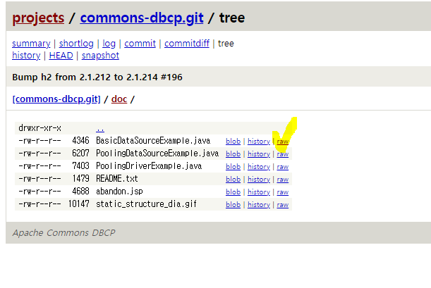 commons-dbcp2 아티팩트는 commons-pool2 아티팩트의 코드에 의존하여 기본 개체 풀 메커니즘을 제공합니다.옆에 example 들어가서