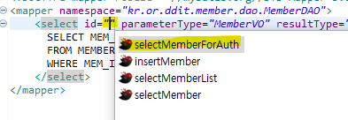 -select id="selectMemberForAuth" 메소드이름따라감 즉 인터페이스에 선언했던것들이 들어올 수 있는것이다!!!!