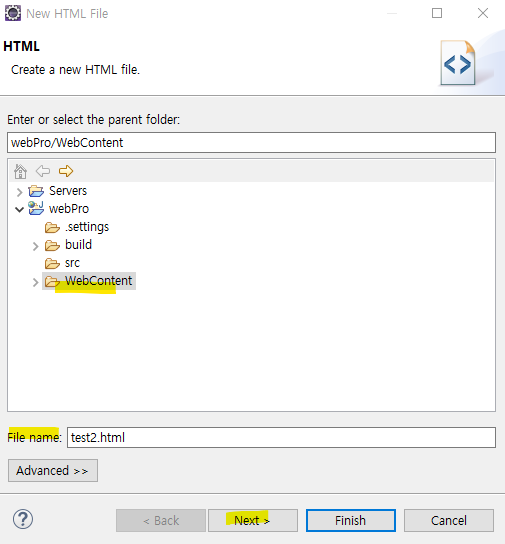 *또 다른 방법-WebContent에 Ctrl+N누르고 검색한다. 그리고 next해줘서 3.1