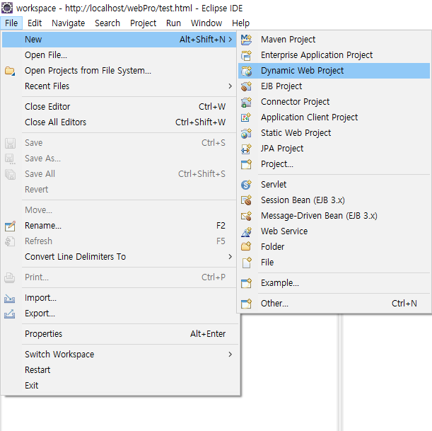2. 사진 2가지 모두 가능이며 Dynamic Web Project눌러주고