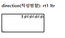 <!DOCTYPE html> <html> <head> <meta charset="UTF-8"> <title>Insert title here</title> <style > textarea { direction: rtl; } </style> </head> <body> <h4>direction(작성방향): rt1 ltr</h4> <textarea rows="4" cols="20"></textarea> <br> </body> </html>