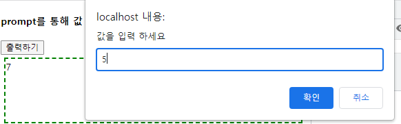 <!DOCTYPE html> <html> <head> <meta charset="UTF-8"> <title>Insert title here</title> <link rel="stylesheet" href="../css/outStyle.css"> <style> div{ border: 3px dashed green; height: 100px; margin: 5px; } </style> </head> <script> function print() { //prompt를 통해 반환 받는 값의 타입은 String //window.prompt("필수항목","옵션항목"); 윈도우는 생략 가능 var a= parseInt(prompt("값을 입력 하세요","A")); var c= prompt("연산자를 입력하세요","+,-,*,/"); var b= parseInt(prompt("값을 입력 하세요","B")); //페이지 꺼버리기 if(a==null || b==null || c==null) return false; //if문 /* var sum = ""; if(c == '+'){ sum = a + b; }else if(c == '-'){ sum = a - b; }else if(c == '*'){ sum = a * b; }else if(c == '/'){ sum = a / b; }else{ alert("+,-,*,/ 중 하나의 연산자를 입력하세요") print(); }*/ //switch문 var sum = ""; switch (c) { case '+': sum=a+b; break; case '-': sum=a-b; case '*': sum=a*b; break; case '/': sum=a/b; default: break; } //result영역에 출력하기 //document.getElementById('result').innerText=sum; //id태그 있을 때 document.getElementsByTagName('div')[0].textContent+=sum; //id태그 없을 때 } </script> <body> <h4>prompt를 통해 값 2개와 연산자를 입력 받고 출력하세요</h4> <button type="button" onclick="print()">출력하기</button> <!-- <div id="result"></div> id태그 존재할때 --> <div></div> </body> </html>